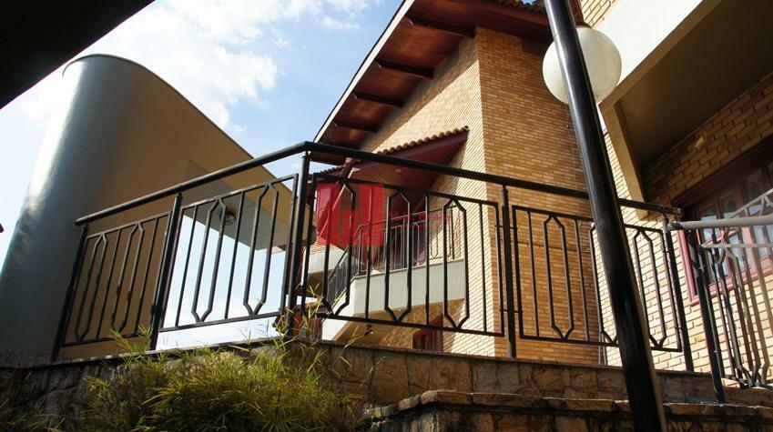 Vagas para 3 veículos coberta;Copa Cozinha Despensa; Piso de granito mapeado; Mesas, cadeiras e armários embutidos,Área de Serviço Lavanderia,Armário embutido; Cômoda para roupas com prateleiras; Dormitório Suíte Empregada,Piso de madeira envernizado; Cama e armários; Banheiro completo; Chuveiro e box vidro temperado decorado; Sala de Jantar, Piso de mármore Travertino mapeado desenho de mármore Rosso Verona; Mesa com tampão de mármore Travertino mesa com 8 cadeiras; Buffet completo com tampa de mármore Travertino. Sala de Estar, Piso de madeira Tatajuba envernizada; Prateleira e bar com balcão completo;Cadeiras de bar; Sala de lareira anexa a sala de estarLareira decorada com mármore Travertino; Lavabo Pisos e paredes de mármore Travertino mapeado; Pia de mármore Rosso Verona decorado; Cuba esculpida em mármore Travertino. Dormitório (23.00 m2) Piso de madeira envernizada Tatajuba;Escada caracol para mezanino toda revestida de mármore,Penteadeira, gaveteiros, espelhos completo e tampo mármore Travertino; Cama casal com criado mudo - tampa de Travertino.Closet, Banheiro, Piso e parede total com mármore Travertino mapeado com desenhos de mármore; Rosso Verona e Crema Valencia; Complemento do quarto principal Acesso interno escada caracol revestida mármore Travertino;Armário completo para Home Theater (Compr. aprox: 4.70 m) Mesa com tampão de marmore Travertino- istalações para computador.Lareira decorada com mármore TrtavertinoQuarto de hóspede n.1 (15.00 m2) Armários embutidos completos. Salão de festas (33.00m2); Vestiário e banheiro para salão de festas; Banheiro, chuveiro com armário para uso de festas e piscina; Churrasqueira totalmente revestida de granito;Adega (10.00 m2),Climatizador de vinhos (aprox. 100 garrafasPiscina, Azulejada metragem aprox. 10.00 x 5.00 prof. 1,50m;Hidro e granito apicoado; Aparelhagem completa para aquecimento dagua. Compressor Para a pressão dágua nos chuveiros e pias.Todo jardim está mapeado com uma irrigação automática regulada por um timer. Caixa d'água Capacidade de 9.000 litros.Para-raios Rede ao redor da casa para proteção geral.Andaimes e material de construçãoGanchos de segurança nos telhados para manutenção e andaimes adequados para uso na casa - escadas com altura para total manutenção. Portões com controle remoto para abertura e fechamento.